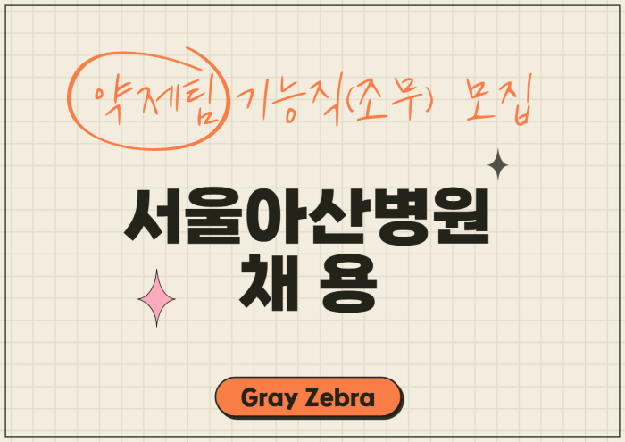 서울아산병원에서 약제팀 소속으로 근무할 기능직을 채용합니다. 이번 기능직 모집에 대해 알아보겠습니다.