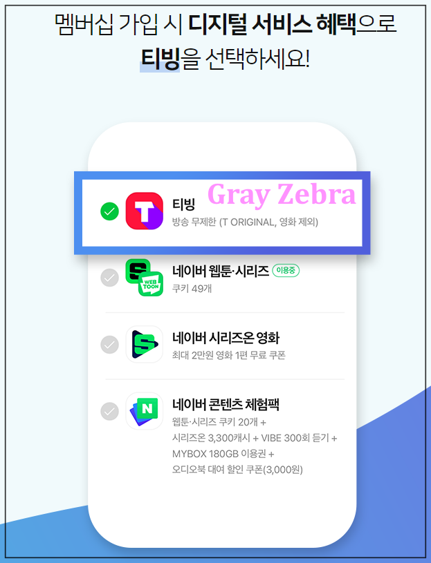 멤버십 시작하기를 하신 후 멤버십 이용권 중 티빙을 선택해주세요.