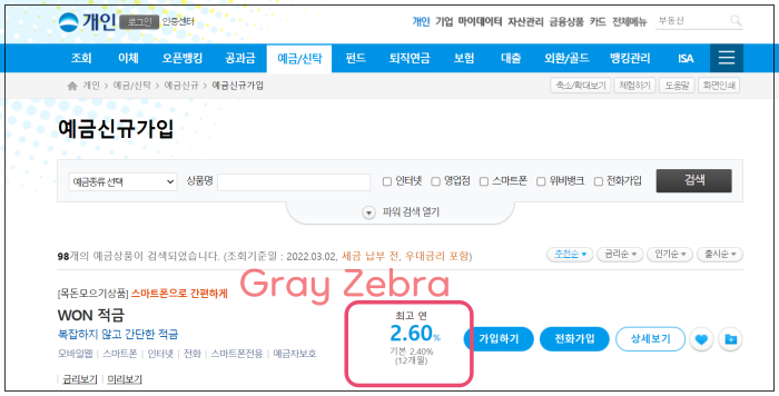 현재 우리은행 적금을 조회하니 아래와 같이 2.6% 적금이 조회되니 이것으로 예를 들어보겠습니다.