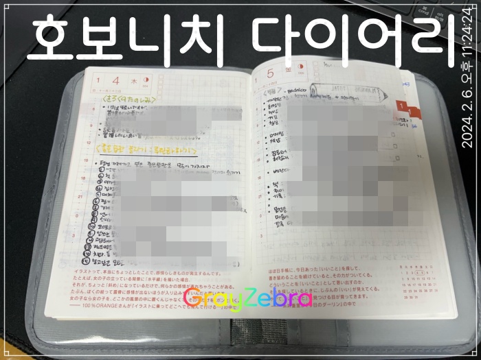 저는 일단 2024년 다이어리는 이렇게 사용해보고 정 불편하면 호보니치 다이어리 커버를 고민해보려구요. 지금 까지는 아주 대 만족입니다.
